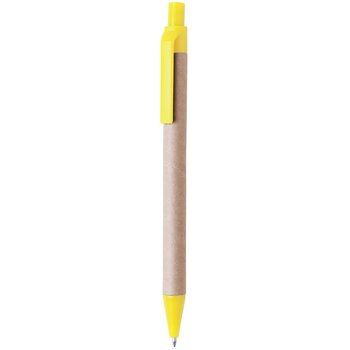 Gerecyclede papieren balpen. Blauw schrijvend.