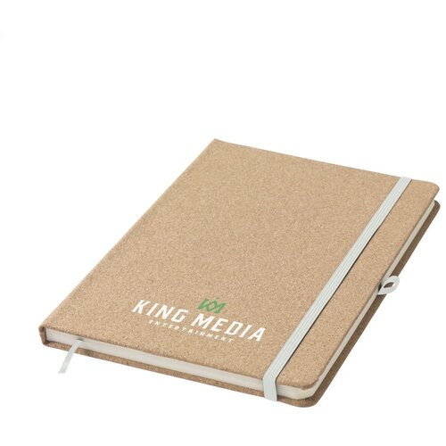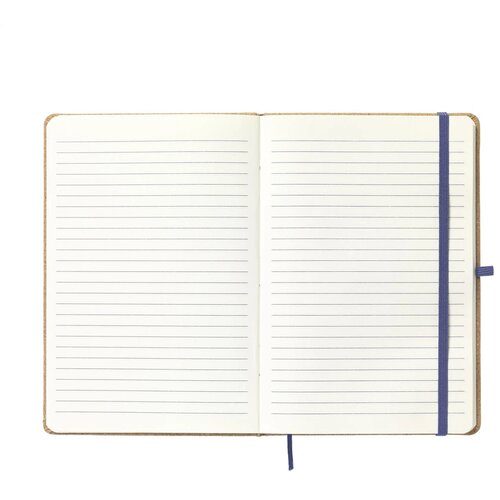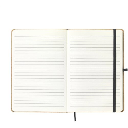Milieuvriendelijk, A5 formaat notitieboekje van kurk. Met ca. 80 vel/160 pagina's crèmekleurig, gelinieerd, FSC-gecertificeerd papier (70 g/m²). Met handige penlus, sluitelastiek en leeslint.