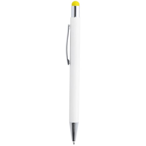 Aluminium touchscreen en balpen met speciale coating voor gekleurde gravures. Blauw schrijvend.