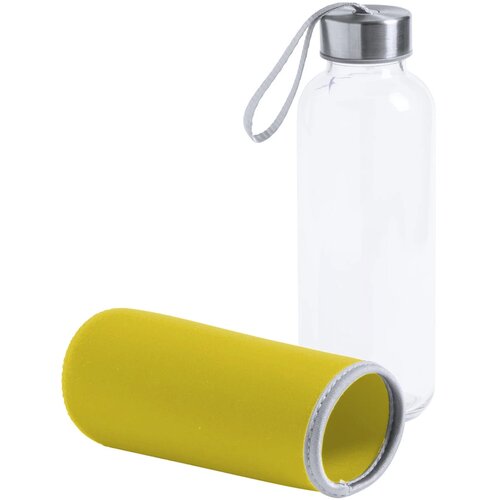 Glazen fles met draagriem is ideaal voor onderweg en tijdens het sporten. De fles heeft een inhoud van 420 ml. Niet geschikt voor koolzuurhoudende dranken. Wordt geleverd met een neopreen hoes in diverse kleuren, die de fles van glas extra bescherming biedt. Een groot voordeel is dat je de fles volledig naar wens kunt bedrukken met jouw eigen ontwerp, bijvoorbeeld rondom, in full colour of zelfs individueel per stuk. Hetzelfde geldt voor de hoes. Ook de dop kan gegraveerd worden. Bestel direct of vraag een offerte op voor de glazen fles met draagriem.