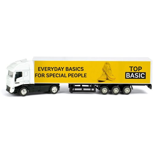 De cabine is gemaakt van metaal en de oplegger is van kunststof. De afmetingen zijn 19,2 x 3 x 4,5 cm. De oplegger kan bedrukt worden, bijvoorbeeld met diezelfde opdruk als de trucks uit het wagenpark van jouw bedrijf. Deze truck mini is een leuke gadget voor op kantoor. Of om weg te geven als speelgoed aan kinderen, aangezien de wielen kunnen draaien.