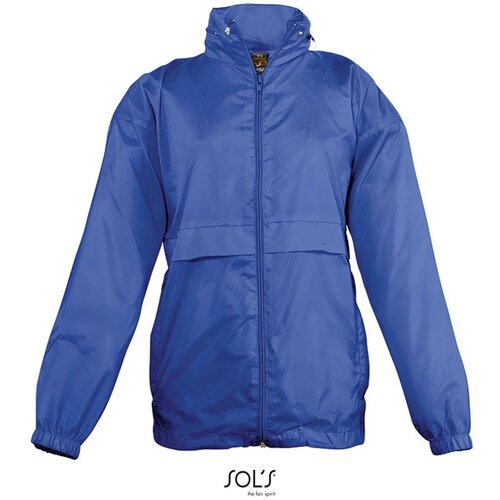 SOL'S SURF Kinder Windbreaker 210g/m². 100% nylon 210 T. Waterafstotend. Ritssluiting. Opgevouwen kap in kraag. 2 buitenzakken met rits. Opvouwbaar in zakje dat met elastiek om de taille gedragen kan worden. Ventilatiegaatjes. Onderboord met rijgkoord. Maten - 5-6 jr: 105-116cm (XL), 7-8 jr: 117-128cm (XXL), 9-11 jr: 129-141cm (3XL), 12-14 jr: 142-164cm (4XL), 15-16 jr: 165-176 cm (5XL)