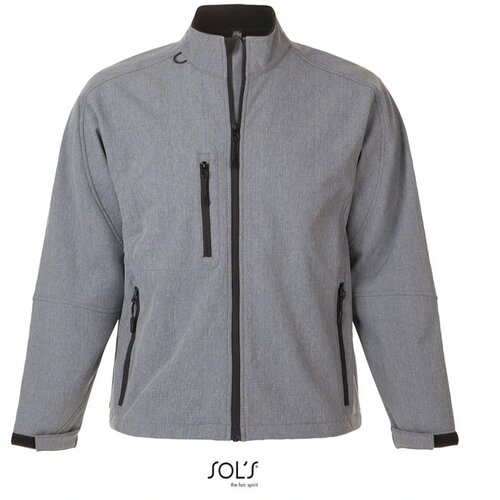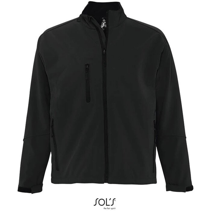 SOL'S RELAX Heren softshell jas 340g/m². Technische stof met één van de hoogste niveaus van waterdichtheid en ademend vermogen op de markt. Gedetailleerde mouwen en getailleerd model. Voor maximaal comfort. Microfleece voering. Aan de binnenkant een kabeldoorgang voor een mobiele telefoon. 3 lagen. 94% polyester - 6% elastaan. Membraan 8000 mm waterdicht en ademend. 2 Zijzakken met ritssluiting.