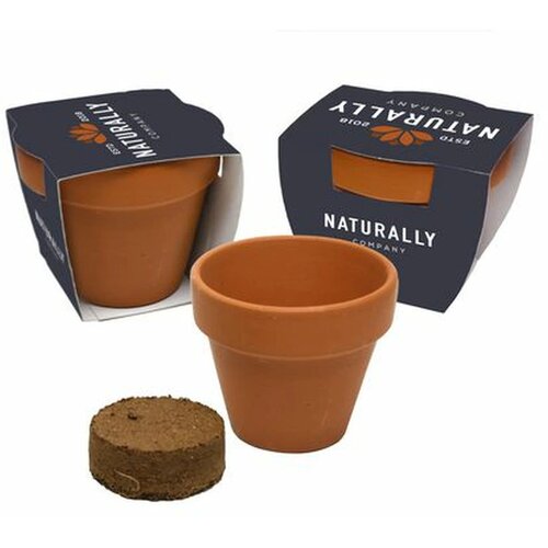 Terracotta bloempotje met bloemzaadjes is een compact kweeksetje van Ø 8,5 x 7 cm. Inclusief kokostablet en een mix van bloemzaadjes. In het zakje tref je de volgende bloemzaadjes aan: moederkruid (margriet), sluierkruid, leeuwebek, schermscheefbloem, zilverschildzaad, mexicaantje, petunia, salvia, zomerazalea en ijsbloem. Het potje helpt bij het kweken van bloemen die bijdragen aan een gezonde bijenpopulatie. Het kartonnen sleeve is full colour te personaliseren met jouw naam, logo of boodschap. Bestel het terracotta bloempotje met bloemzaadjes snel en verras klanten of relaties met een milieuvriendelijk en leuk geschenk.
