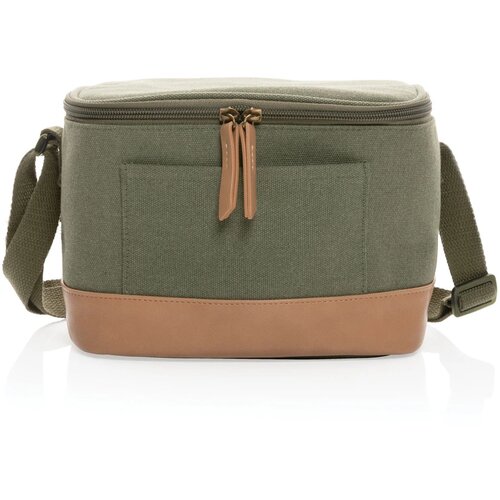 Neem je favoriete eten of drinken mee in deze chique koeltas! In dezee koeltas passen gemakkelijk 6 blikjes, de koeltas heeft een open voorvak en een hengsel voor gemakkelijk dragen. Gemaakt van hoge kwaliteit 16oz. gerecycled canvas en mooie PU details. Met AWARE™ tracer die het echte gebruik van gerecycled katoen valideert. 2% van de opbrengst van elk verkocht Impact-product wordt gedoneerd aan Water.org. Samenstelling 60% gerecycled katoen en 40% gerecycled polyester. Voering in PEVA.