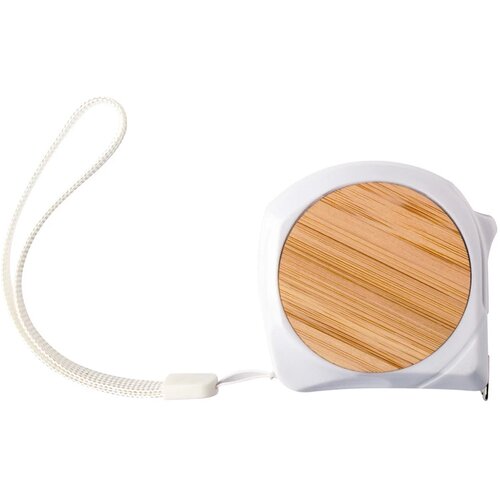 De 5m rolmaat met bamboe afwerking is handig en stijlvol. Het meetlint van 5 meter heeft een lockfunctie, metalen clip en polsband. Gemaakt van kunststof met bamboe details. Compact formaat van 65×65×37 mm, ideaal voor dagelijks gebruik. Verkrijgbaar in wit of zwart met bamboekleurige zijkanten. Laat de rolmaten graveren of bedrukken op de voorzijde met jouw logo. Een duurzaam en praktisch geschenk dat opvalt. Perfect om jouw bedrijf in de spotlight te zetten!