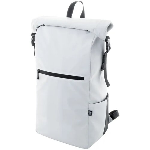 Waterdichte rolltop-rugzak van RPET met gesp en klittenbandsluiting, gewatteerd laptop- (16") en tablet (10") compartiment, voorvak met ritssluiting, zijzakken, gewatteerde rug- en schouderbanden. PU-gecoat 600D RPET-polyester, met opvallend RPET-label.
