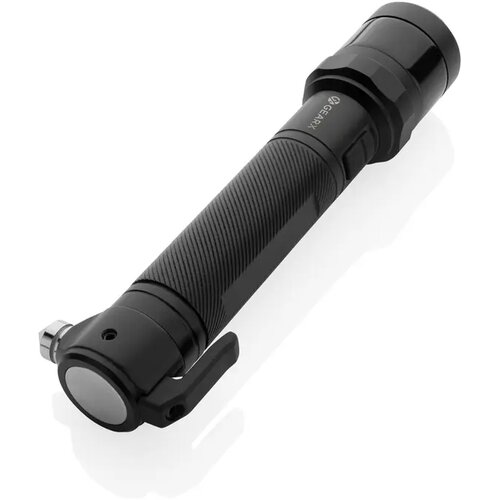 De Gear X RCS gerecycled aluminium veiligheidszaklamp is een heavy duty tool van 59% gerecycled materiaal. Hij heeft een krachtige 500 lumen zaklamp met vier lichtstanden en een rode nood-LED met drie modi. Dankzij de oplaadbare 2000 mAh lithiumbatterij laad je hem makkelijk via USB op. Met geïntegreerde gordelsnijder, raamhamer en magneet om hem stevig te bevestigen. Gebruikstijd is 2 uur en hij is waterbestendig volgens IPX4. Je kunt de Gear X RCS gerecycled aluminium veiligheidszaklamp laten bedrukken of graveren met jouw ontwerp.