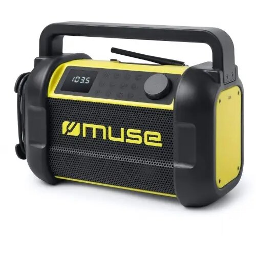 Deze compacte WORKRADIO (IP64 spatwater- en stofdicht) met display is gemakkelijk overal mee naartoe te nemen en kan zorgeloos worden gebruikt voor elke klus of bouwplaats. Je kunt kiezen uit alle FM-radiostations (30x voorkeuze) en Bluetooth met NFC-verbinding. Plaats je telefoon in het stofvrije en afgesloten compartiment en laad hem (met USB-C) direct op via een van de 1500mAh oplaadbare batterijen terwijl je luistert naar je eigen afspeellijst. Telefoon... geen probleem, je kunt handsfree bellen met deze WORKRADIO met 20W speaker. Het meegeleverde snoer met stekker kan eenvoudig aan de zijkant worden opgerold.