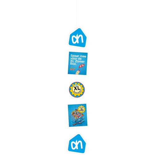 Verticale decoratieslingers trekken direct de aandacht bij etalages, events of in winkelpanden. Dankzij het transparante nylondraad lijken ze te zweven. De verticale decoratieslingers worden gemaakt van stevig 300 g/m² MC-papier en kunnen aan beide zijden full colour bedrukt worden. Je bepaalt zelf de lengte en vorm, volledig op maat. Een krachtige manier om jouw merk of boodschap in beeld te brengen en extra op te laten vallen op drukbezochte locaties.