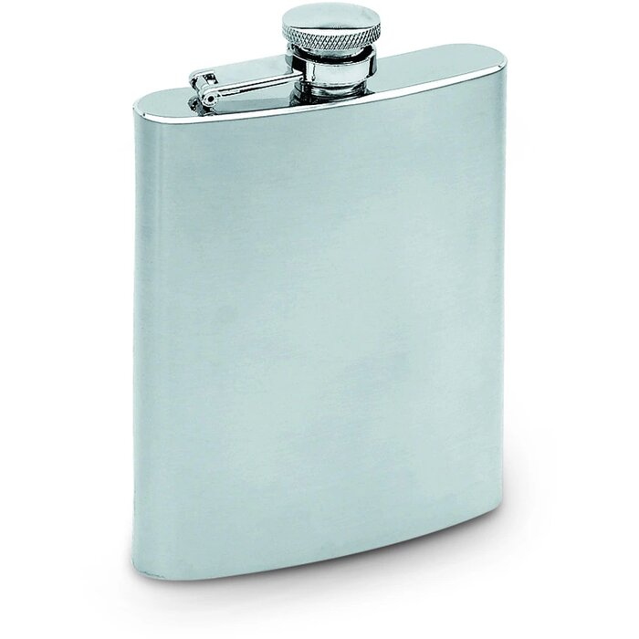 Deze stijlvolle RVS heupfles is perfect voor onderweg. Dankzij het enkelwandige ontwerp is de RVS heupfles licht van gewicht. De fles is gemaakt van hoogwaardig roestvrij staal. Met een capaciteit van 200 ml en een afmeting van 12 x 9 x 2 cm is hij compact en handig. De heupfles is uitgevoerd in een elegante matte zilveren kleur. Per stuk in doosje verpakt. Personaliseer hem met een gravure of bedrukking, op één of beide zijden. Een ideaal relatiegeschenk dat lang meegaat en indruk maakt. Bedrukte heupflessen, perfect voor elke gelegenheid!